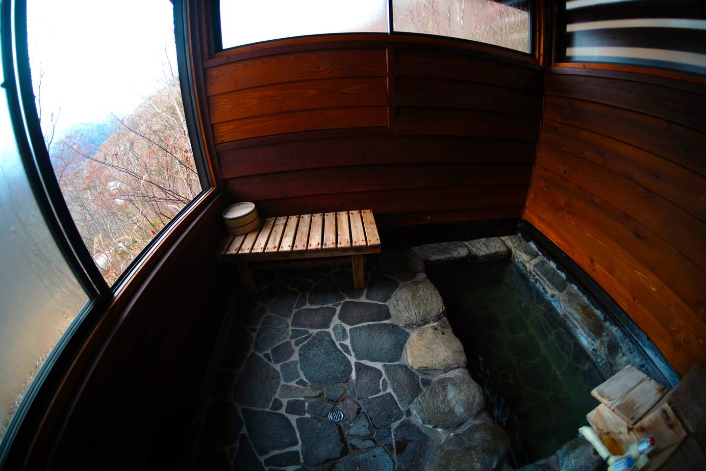 After the slopes, soak in the semi-outdoor onsen-style bath and watch the snow fall over the Northern Alps.